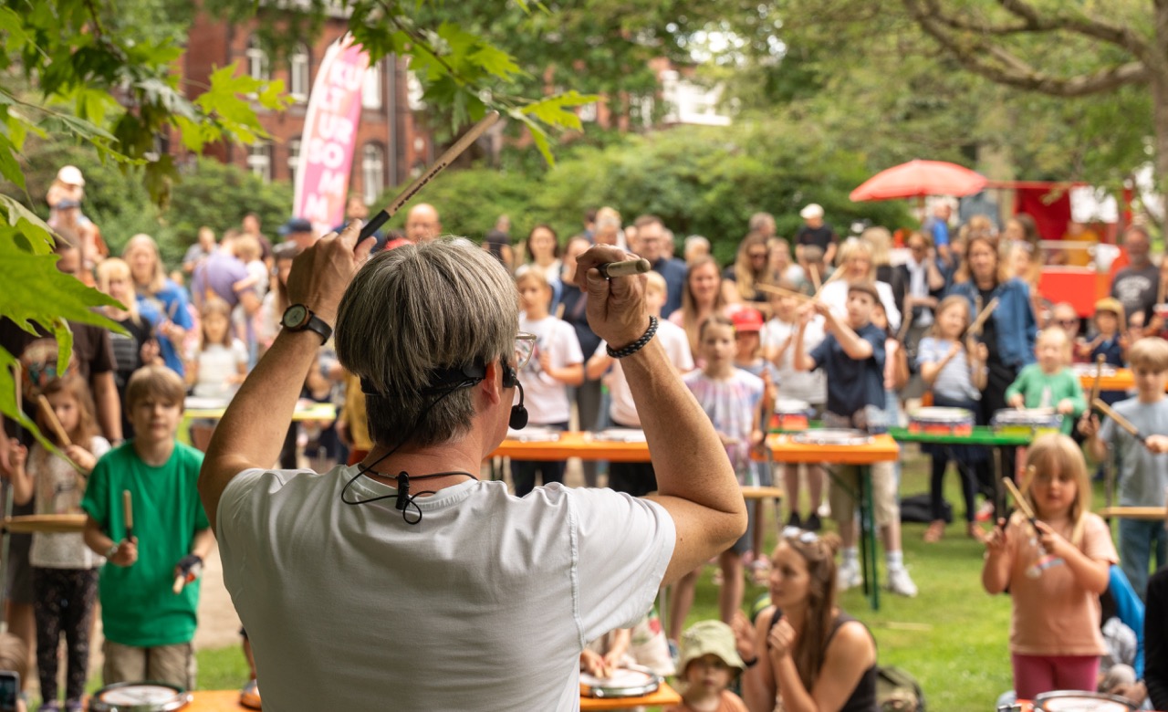 Der Profi-Schlagzeuger Joachim Brüntjen hatte eine clevere Idee: „Rudeltrommeln“ – jetzt wird gemeinsam getrommelt!